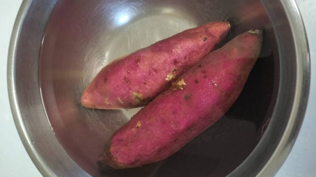 さつま芋を洗い、塩水に20分ほど浸してから…